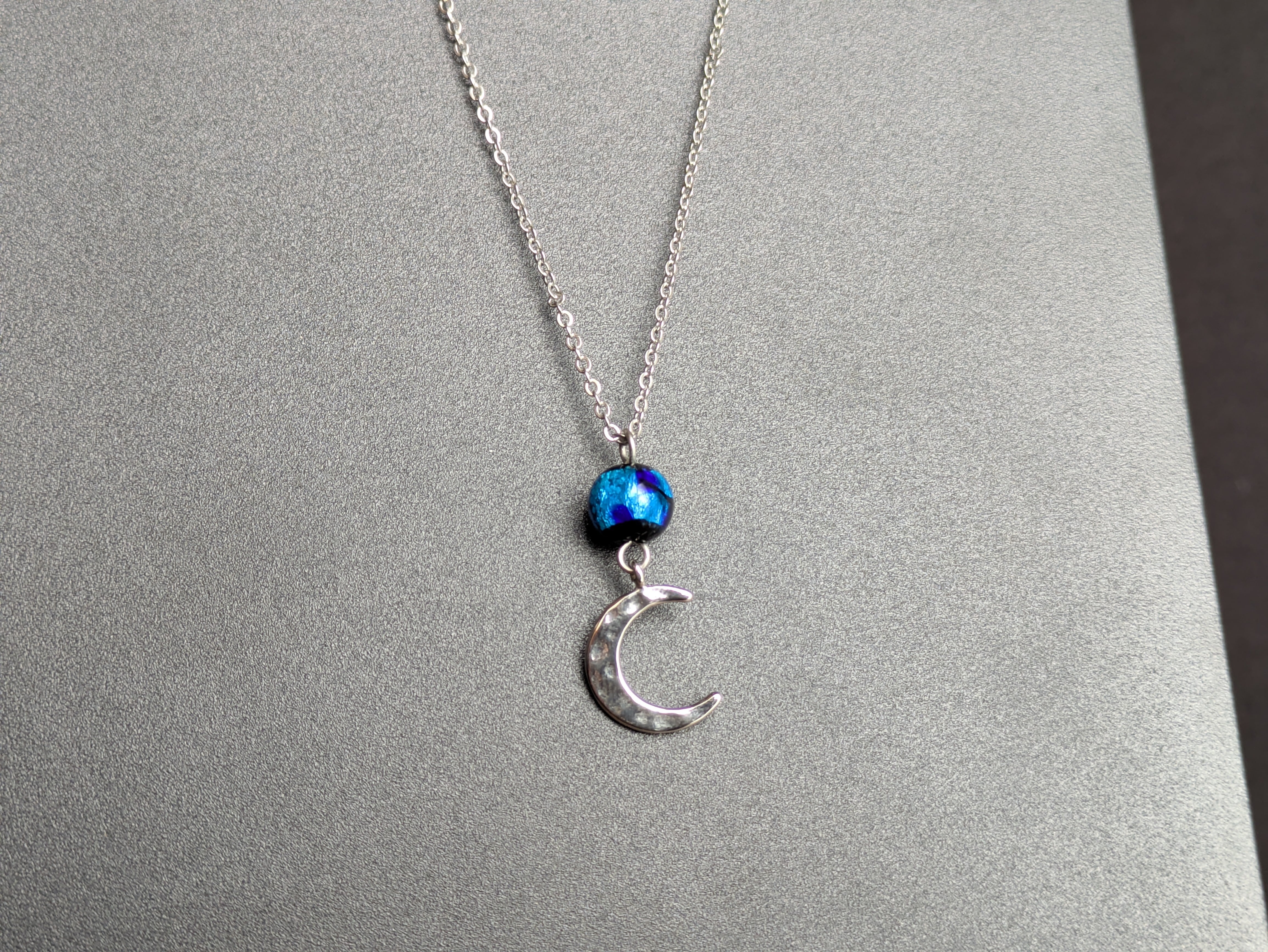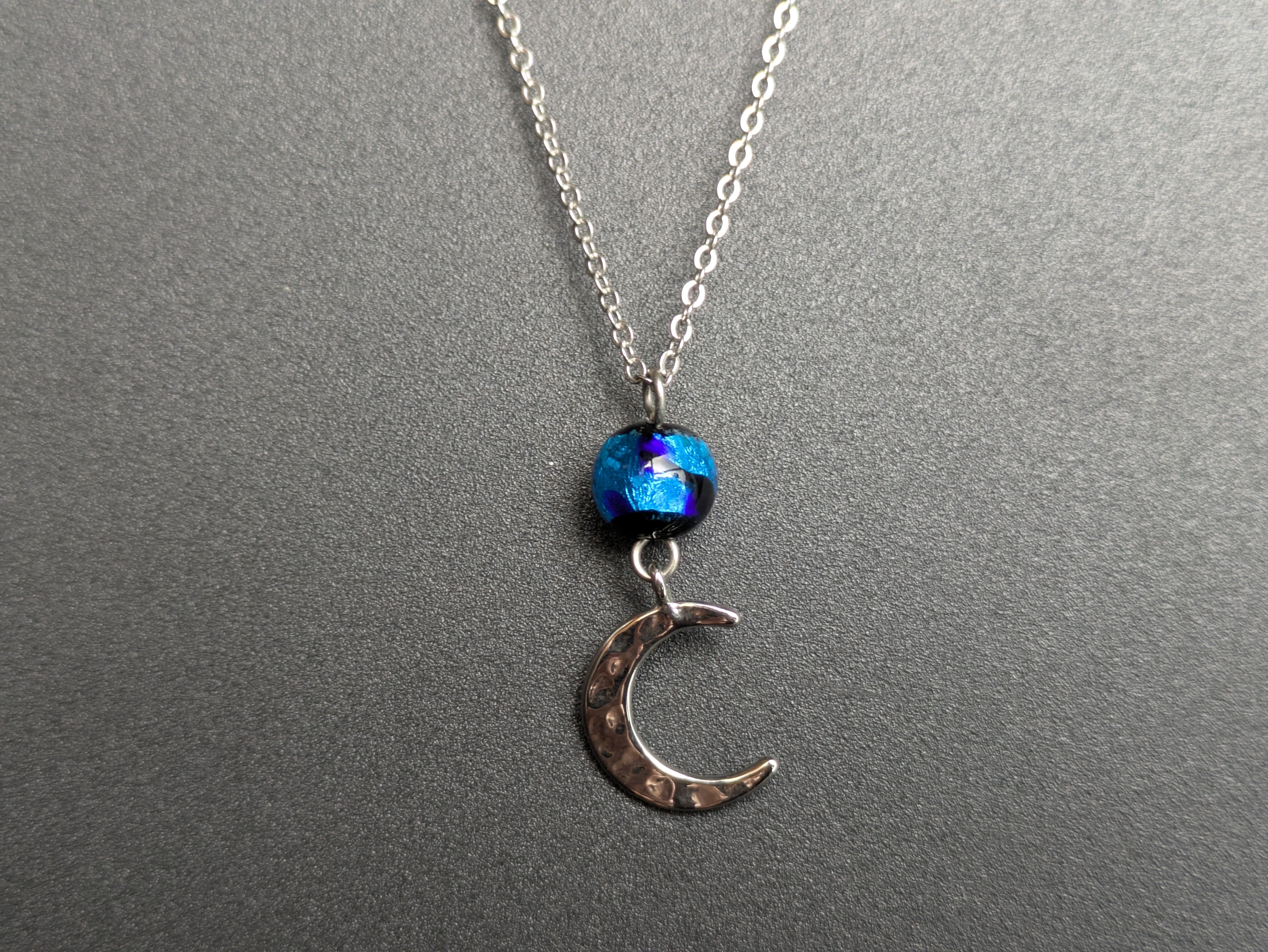 このガラスペンダントは、職人の手によって丁寧に作られ、銀箔が施されたことで、光を受けるたびに美しい煌めきを演出します。神秘的な魅力を兼ね備えたこのアイテムは、あなたの個性を引き立てる存在になることでしょう。