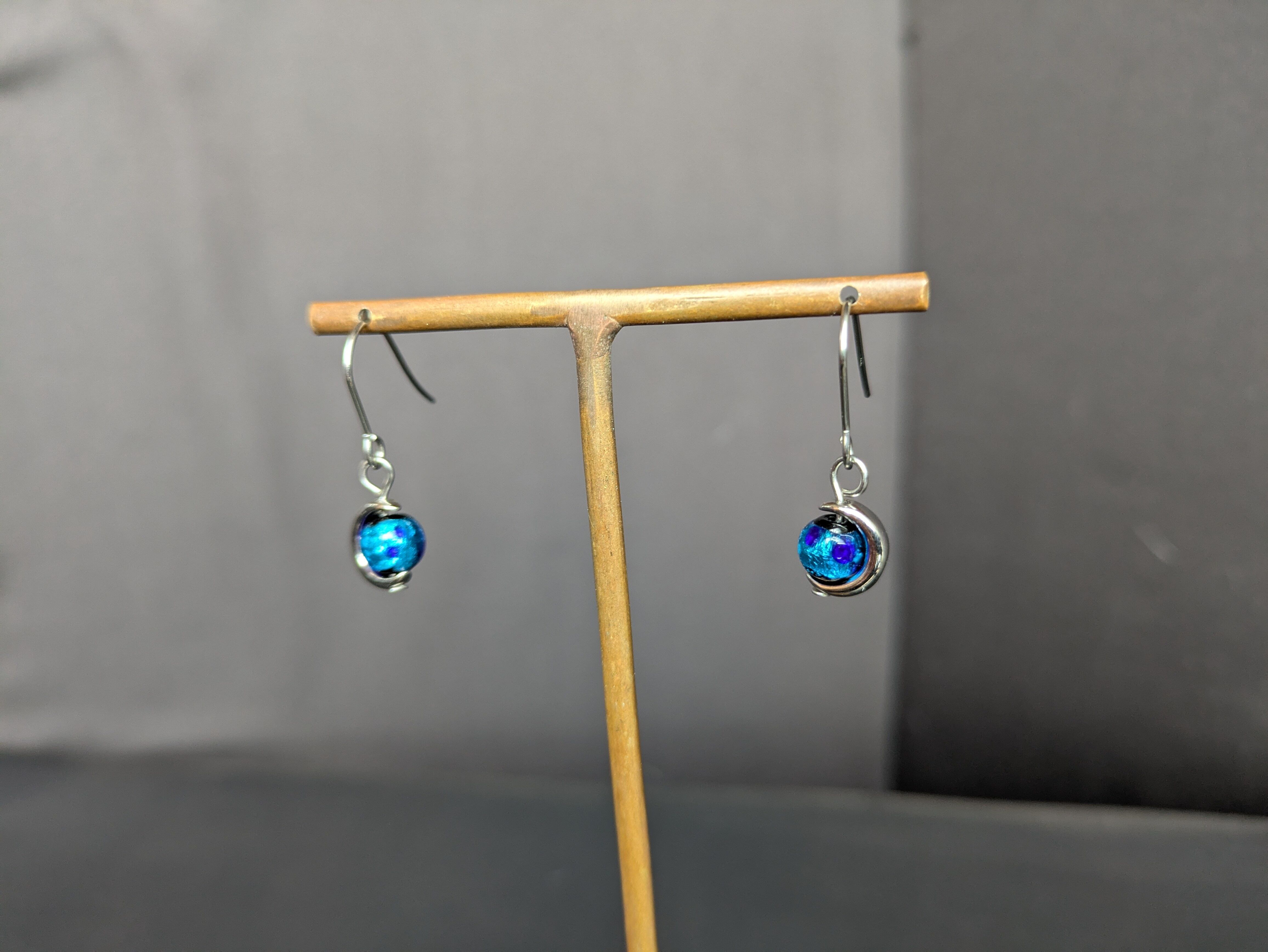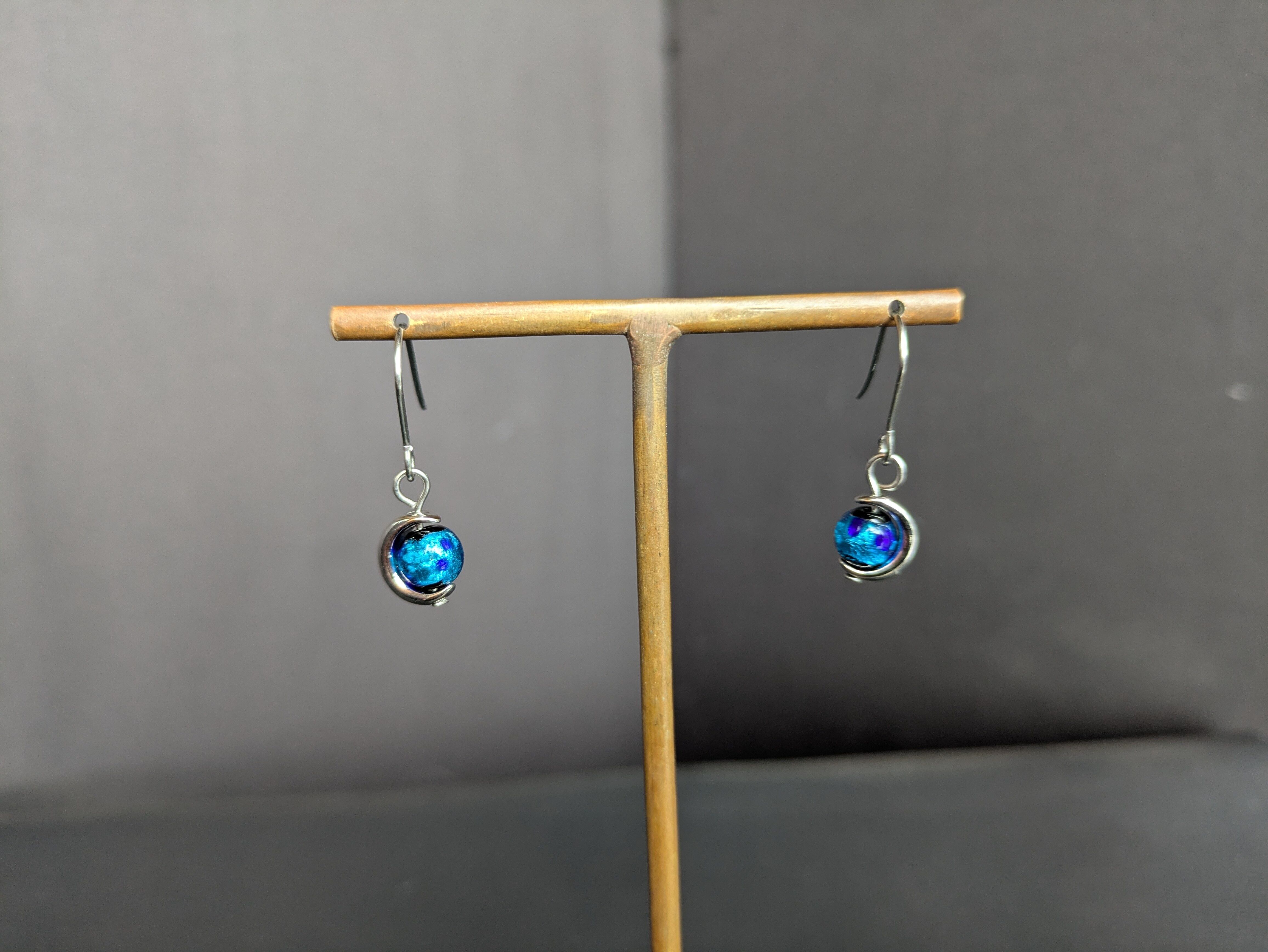 銀箔入りガラスピアス月